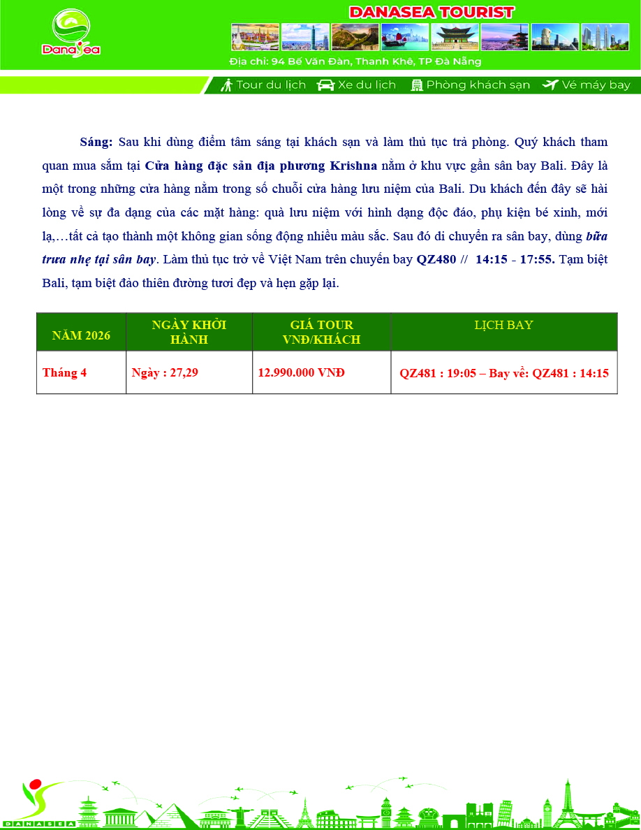 [ LỄ 30/4] Du lịch Bali 2026